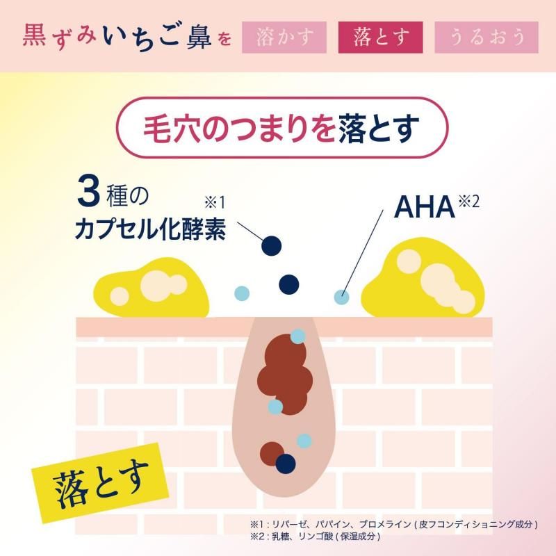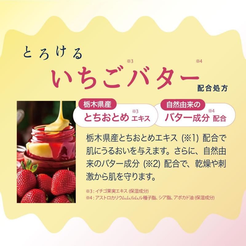 エチルヘキサン酸セチル、トリイソステアリン酸PEG-20グリセリル、イソステアリン酸PEG-8グリセリル、トリ(カプリル酸/カプリン酸)グリセリル、ジカプリル酸PG、(ベヘン酸/エイコサン二酸)グリセリル、イチゴ果実エキス、パパイン、リパーゼ、ブロメライン、乳糖、リンゴ酸、ナイアシンアミド、コメヌカ油、オリーブ果実油、カニナバラ果実油、マカデミア種子油、ホホバ種子油、アボカド油、シア脂、アストロカリウムムルムル種子脂、テトラヘキシルデカン酸アスコルビル、サリチル酸、トコフェロール、ステアリン酸イヌリン、BG、グリセリン、ジグリセリン、ペンチレングリコール、アルギニン、カルボマー、水添レシチン、キサンタンガム、スクワラン、ヘキサヒドロキシステアリン酸ジペンタエリスリチル、デキストリン、グリチルリチン酸2K、トリエチルヘキサノイン、バチルアルコール、ビサボロール、ヒドロキシステアリン酸コレステリル、ラウロイルグルタミン酸ジ(フィトステリル/オクチルドデシル)、グリセリルグルコシド、シクロデキストリン、スフィンゴ糖脂質、水、フェノキシエタノール、香料